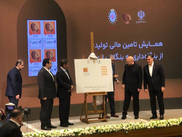 بنا بر این گزارش، در خاتمه از تمبر یادبود این مراسم با حضور رئیس مجلس شورای اسلامی، وزیر امور اقتصادی و دارایی، رئیسکل بانک مرکزی و مدیرعامل بانک ملی رونمایی شد.